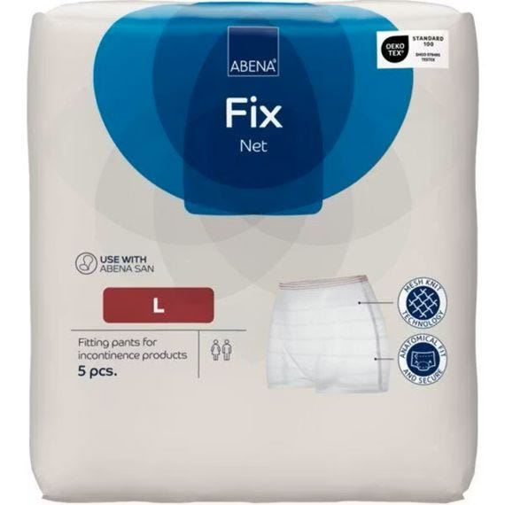 Abena Net Pants are high-quality elastic fixation pants, specifically designed to securely hold incontinence pads in place as part of an effective two-piece system. Constructed with lightweight mesh and vertical elastane zones, these pants deliver excellent fixation while ensuring breathability and all-day comfort. The colour-coded waistband allows for quick and easy size recognition, while the reusable design supports up to 25 washes—offering exceptional value and sustainability for ongoing use.